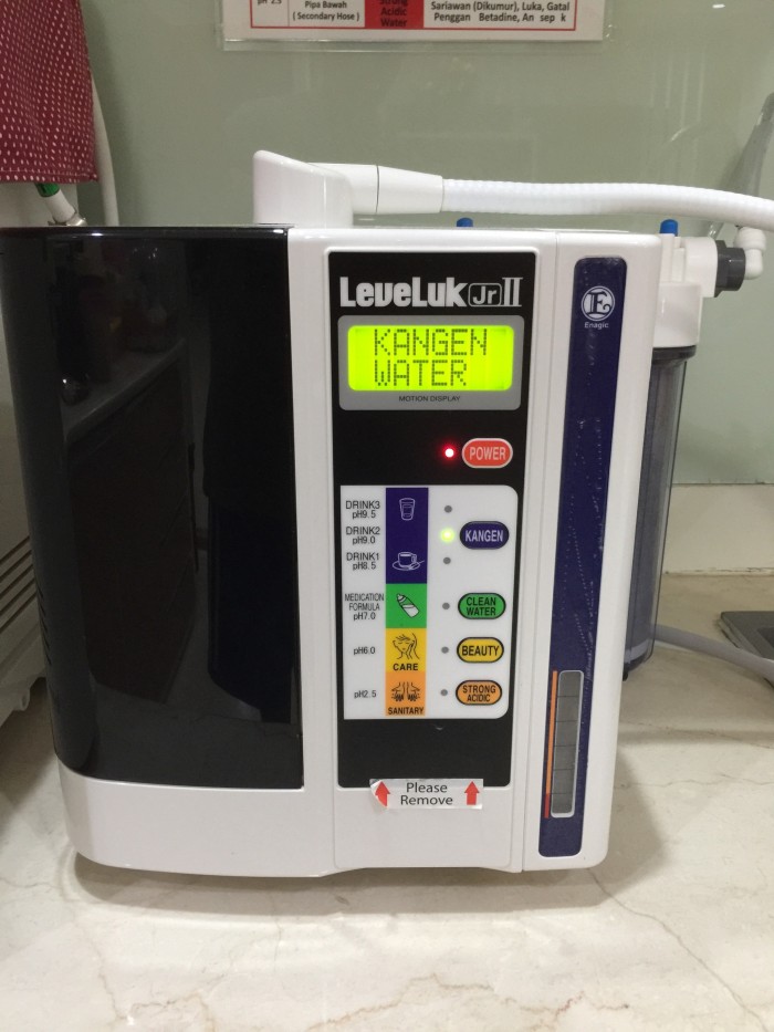 Pemasaran informasi jual mesin air kangen water seluruh indonesia. Mesin kangen water leveluk jrii ini mempunyai kandungan antioksidan molekul hidrogen aktif sekitar 200 s d 450 tergantung kualitas air baku dan kecepatan aliran air. Rated 5 00 out of 5. Ac 100v 50 60hz with ground power consumption.
